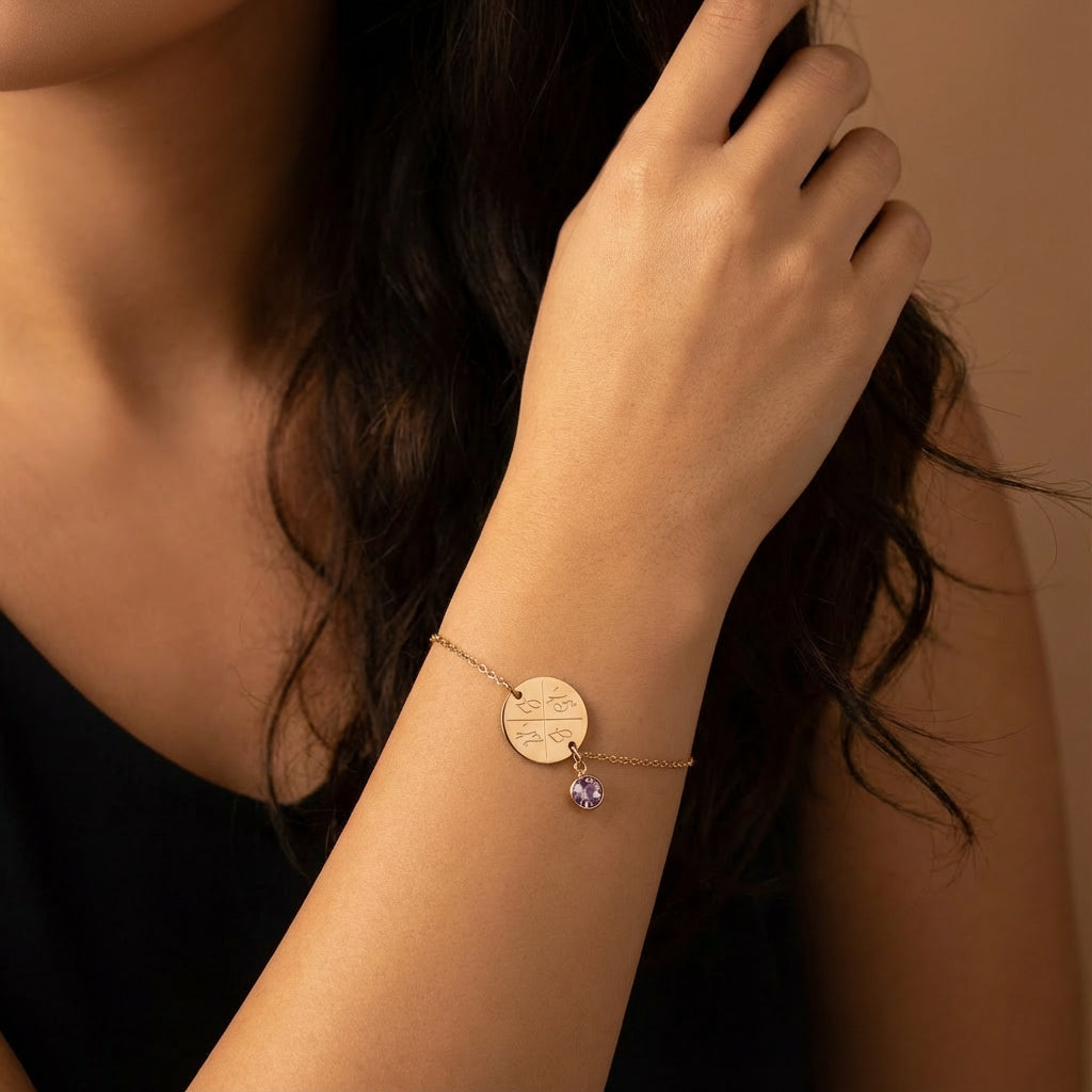 Armband aus Edelstahl mit Gravur Plättchen + Geburtsstein